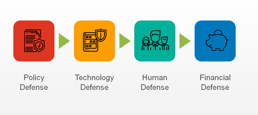 नीचे साइबर रक्षा का एक उच्च स्तरीय दृष्टिकोण है जिसे कंपनियों को अपनाना चाहिए।